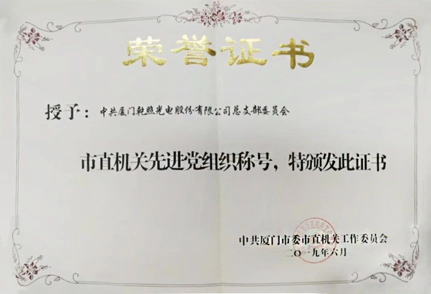 乾照光電黨總支獲評 “廈門市直機關先進黨組織”