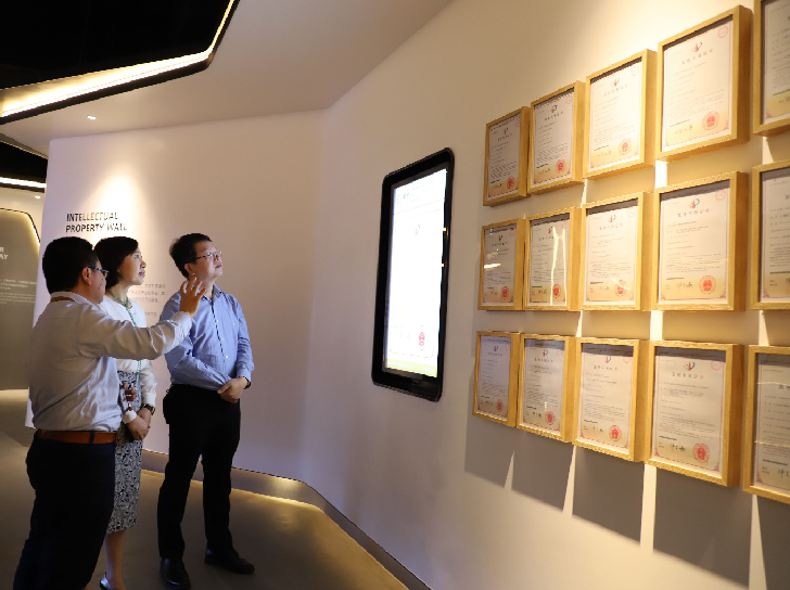 乾照光電知識產(chǎn)權(quán)戰(zhàn)略部負(fù)責(zé)人陳凱軒向盧局長介紹到,乾照光電擁有完善的知識產(chǎn)權(quán)管理體系,建立了“持續(xù)實現(xiàn)經(jīng)營自由”的全球知識產(chǎn)權(quán)戰(zhàn)略目標(biāo),具備了知識產(chǎn)權(quán)戰(zhàn)略管理能力。截止目前,公司已申請專利505件,其中發(fā)明專利申請365件,占比達(dá)72.3%;已授權(quán)專利226件,其中發(fā)明專利授權(quán)110件,占比達(dá)48.7%,并于2018年獲得“國家知識產(chǎn)權(quán)示范企業(yè)”榮譽稱號。