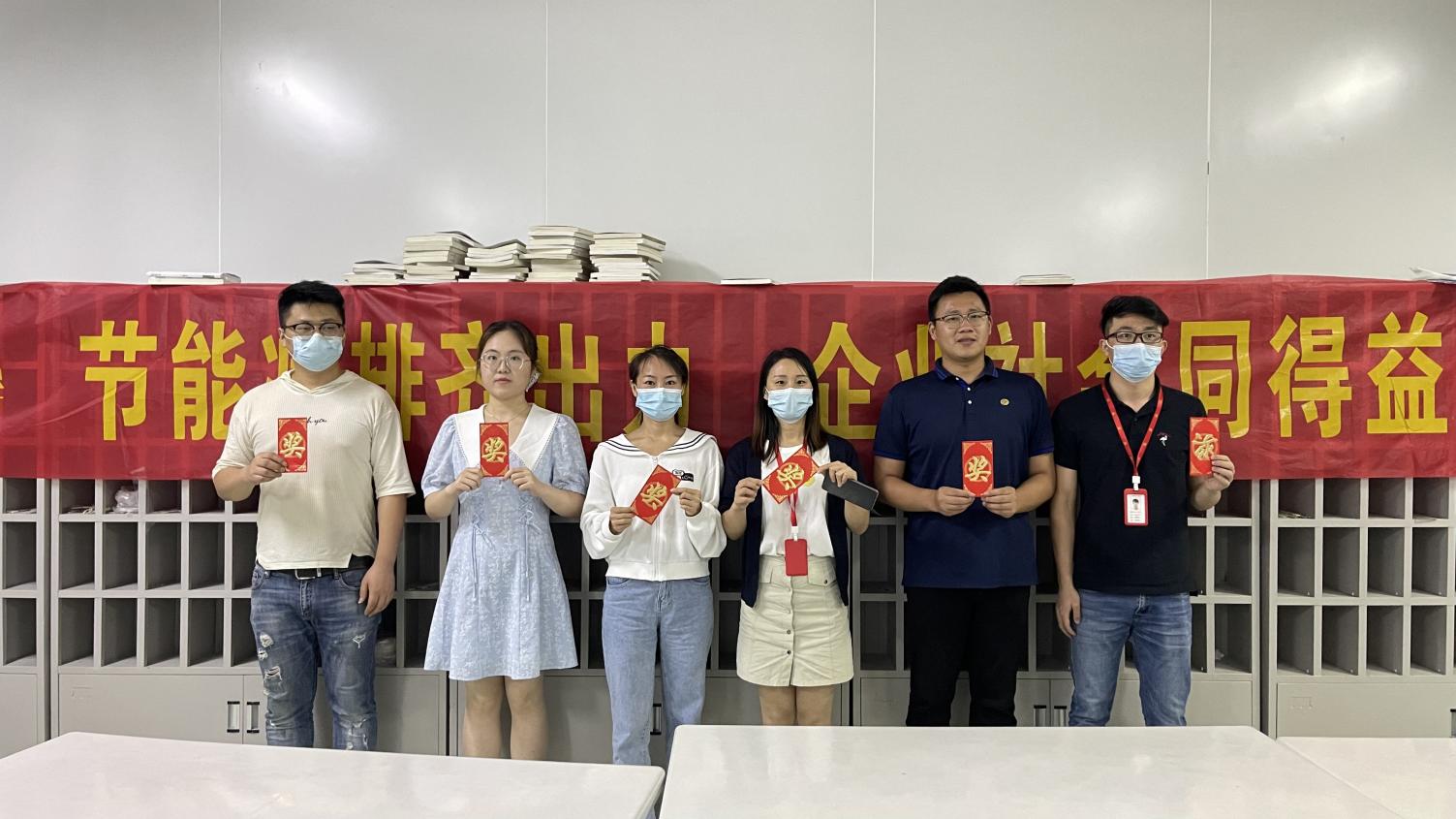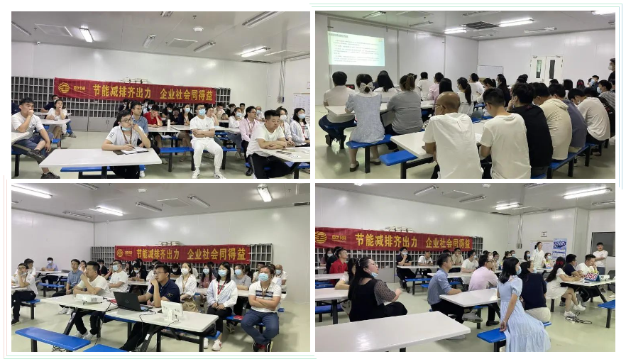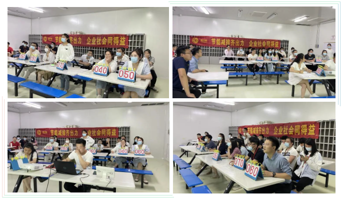 隨后,在公司培訓室又進行了一場關于能源管理的培訓并同步開展知識答題競賽活動。現場共吸引30名員工參與,經過工作人員系統講解能源和環保管理等方面的相關知識后,緊張而又激烈的知識競賽就開始了!競賽中,五人一組,隨機搶答,選手們全神貫注、認真思索,以昂揚的斗志、飽滿的熱情投入到比賽中。現場氣氛活躍,最后經過激烈PK,六名選手獲得了本次比賽大獎!